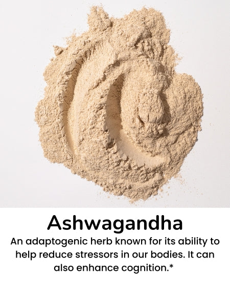Antioxidant loaded ingredients paired with the stress reducing adaptogen ashwagandha*